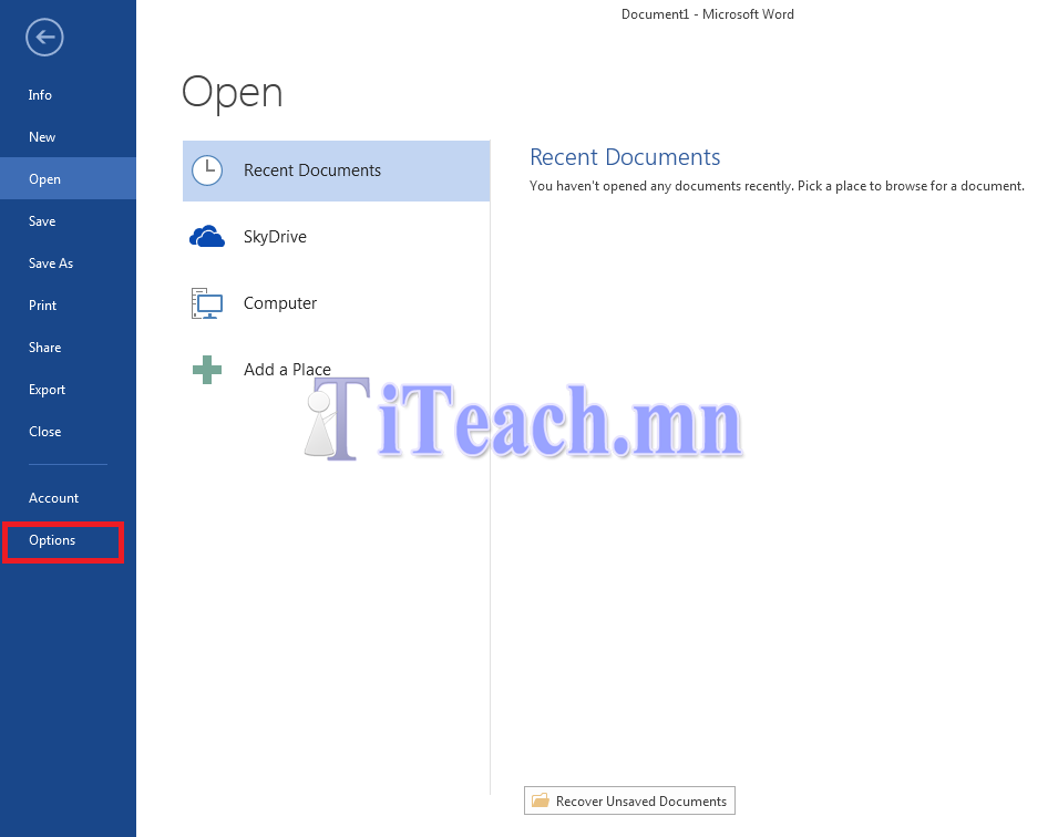 - Гарч ирсэн меню дотроос зүүн доод хэсэгт байгаа “Option” дээр дарна.