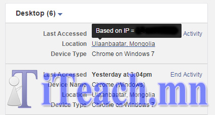 - “Edit” товчийг дарахад таны одоо холбогдож байгаа төхөрөмжийг харуулна. Мөн өмнө нь орж байсан төхөөрөмжүүдийн хэзээ орсон болон хаанаас орсон IP хаяг зэрэг мэдээллийг харах боломжтой.