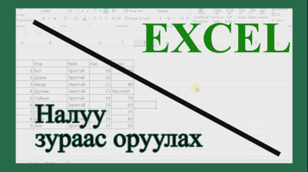“Microsoft Office Excel” дээр налуу зураас оруулах.