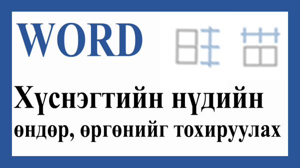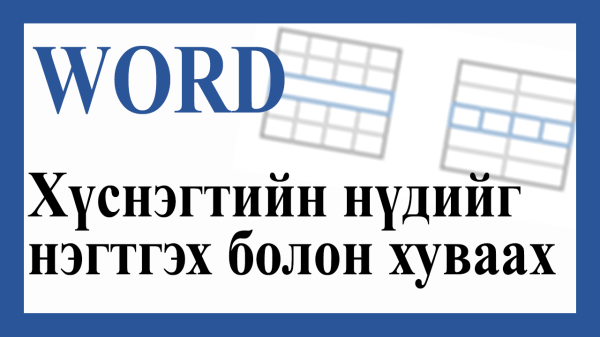 Word дээр үүсгэсэн хүснэгтийн нүдийг хүссэнээрээ нэгтгэж хуваах талаар заах болно.
